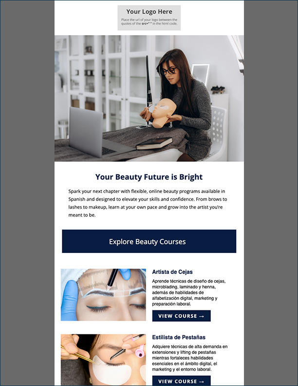 Explore Spanish Beauty Courses – English Post author:Hector Arvizu Post published:April 28, 2026 Download HTML Document (4kb) Use this template to promote your Spanish language courses.