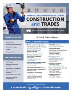 Use this flyer to promote various Construction and Trades Advanced Career Training online courses.