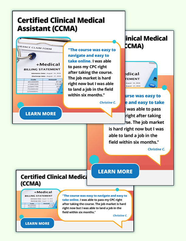 Use these ads to promote the Certified Medical Administrative Assistant with Medical Billing and Coding course.